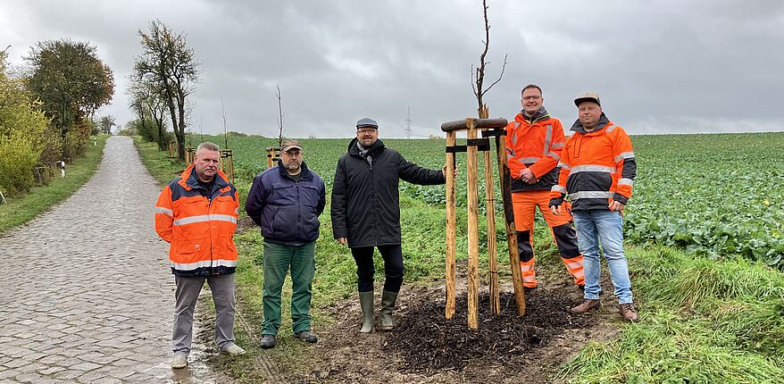 An der Kreisstraße 1150 führte der Landkreis Börde eine Baumpflanzung durch. Damit wurde gleichzeitig die historische Birnenallee aus Rottmersleben kommend um 20 Birnenbäume der Sorten Gute Graue, Conferencebirne, Pastorenbirne und Butterbirne erweitert. Landrat Martin Stichnoth packte mit an und unterstützte die Männer bei der Pflanzaktion.