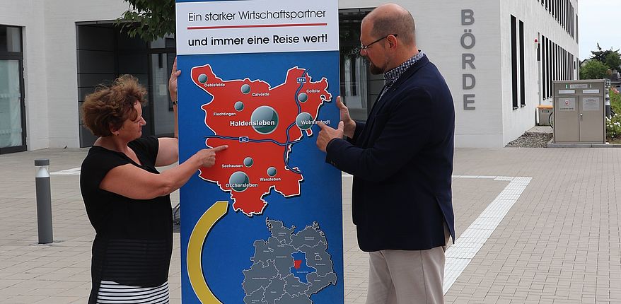 Existenzgründungen im Landkreis Börde in Zeiten von Corona / Landrat Martin Stichnoth stärkt seiner Gründerberaterin Astrid Claus den Rücken.