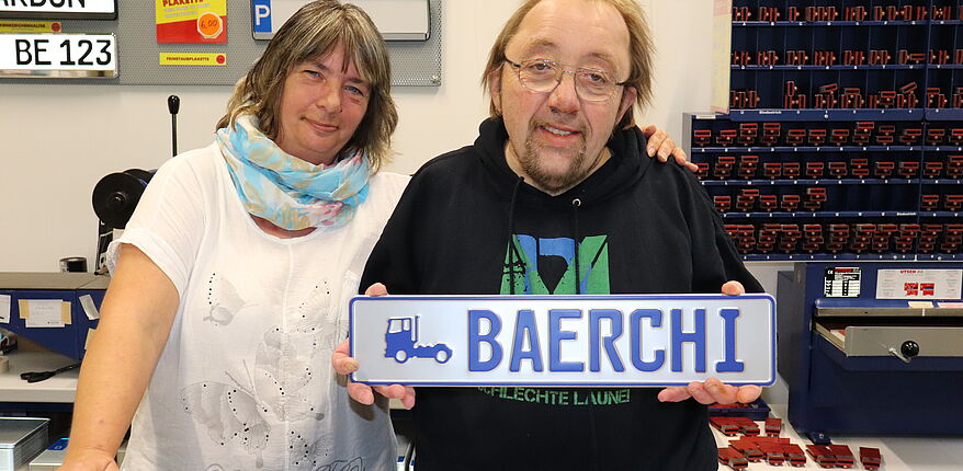 In der KfZ-Schilderprägung im Landratsamt in Haldensleben steht am 12. Oktober Jens Weitze aus dem Matthias Claudius Haus mit an den Maschinen. Er beobachtet wie die Mitarbeiter zunächst den Schilderrohling in die Präge-Maschine legen, und mit immensen Druck die Buchstaben und Ziffern des gewünschten Nummernschildes auf den Aluminium-Rohling prägen. Danach wird die schwarze Farbe auf die hochgeprägten Buchstaben und Zahlen gewalzt. Schon nach kurzer Zeit kann Herr Weitze mit unterstützen und sich am Ende des Tages sein ganz persönliches Schild selber herstellen.