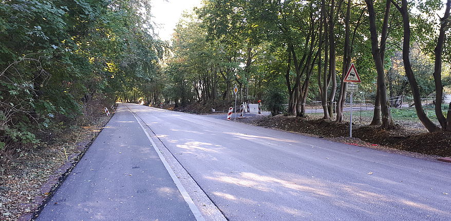 Diese umfangreiche Baumaßnahme wird nun nach rund 7 Monaten zum Abschluss gebracht. Der neue Straßenkörper mit einer bituminösen Deckschicht hat jetzt eine Breite von 6,00 m. Es wurden 3 neue Straßendurchlässe gebaut, die das anfallende Niederschlagswasser in 6 neue Regenrückhaltebecken leiten.