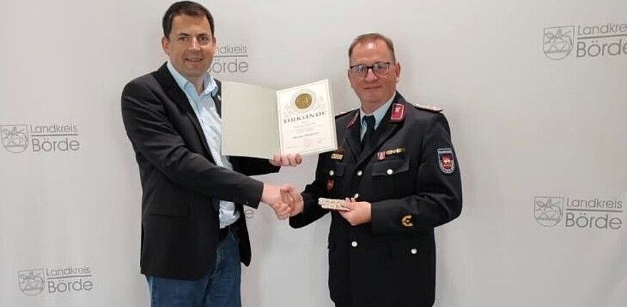 Seit April 2019 steht Kamerad Matthias Schumann (Jg. 72) in der Verantwortung als Kreisbrandmeister. In dieser Funktion ist er für die Durchsetzung der dem Landkreis Börde obliegenden Aufgaben des abwehrenden Brandschutzes und der Hilfeleistung verantwortlich. Schumann ist „Verbandsführer“ und damit Inhaber der höchsten Qualifizierungsstufe auf dem Gebiet der Freiwilligen Feuerwehren.