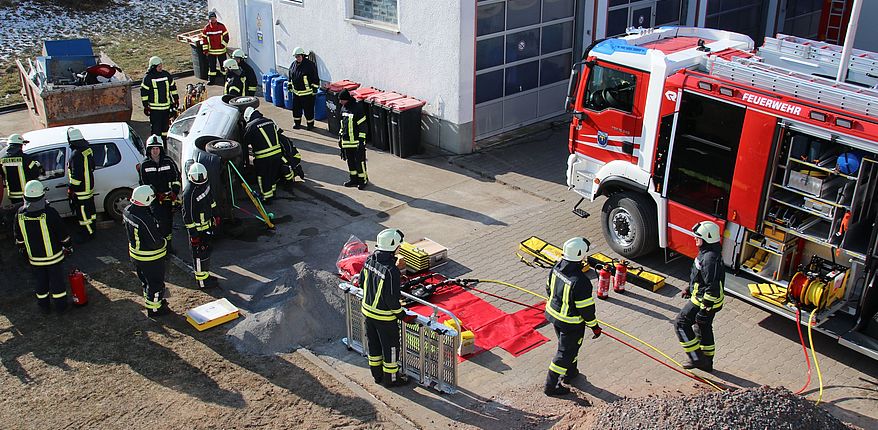 Auch die Personenrettung nach Verkehrsunfällen gehört zum Programm der Kreisausbildung / hier ein Foto von einer Übung auf dem Hof der Feuerwehrtechnischen Zentrale in Haldensleben (Kronesruhe)
