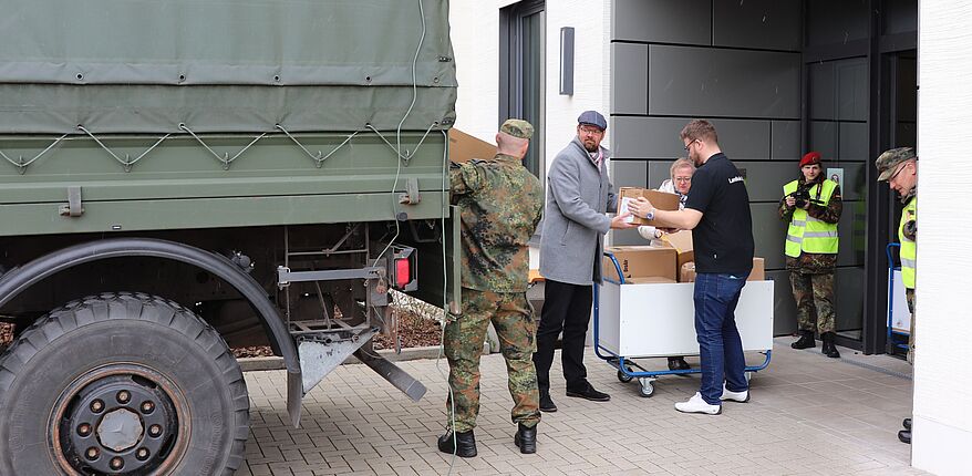 COVID-19-Schutzausrüstung / Das Landeskommando der Bundeswehr Sachsen-Anhalt realisiert Lieferung an das Gesundheitsamt des Landkreises Börde.