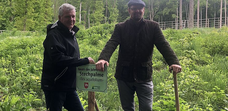 Die europäische Stechpalme ist der Baum des Jahres 2021. Landrat Martin Stichnoth und Guido Heuer, Vorsitzender der Schutzgemeinschaft Deutscher Wald in Sachsen-Anhalt, haben in diesen Tagen "die Ärmel hochgekrempelt" und eine Stechpalme im Hohen Holz gepflanzt.