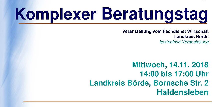 Ansprechbar sind am Veranstaltungstag auch kompetente Vertreter verschiedener Bildungsträger und Krankenkassen sowie Vertreter der Projekte EXNA (Existenzgründungen im Rahmen der Unternehmensnachfolge) und EMI (Existenzgründung-Migration-Integration) und natürlich die Existenzgründerberaterin des Fachdienstes Wirtschaft des Landkreises Börde, Astrid Claus.