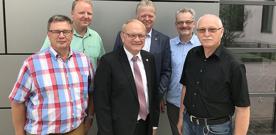 Landrat Hans Walker empfing Vertreter der Wohnungswirtschaft, um über Fragen der Nachhaltigkeit der Investition zu diskutieren. Im Bild von links nach rechts: Rainer Lippelt / Geschäftsführer Wohnungsbaugesellschaft Wanzleben mbH, Dr. Thomas Harborth / Geschäftsführer BEWOS Wobau GmbH, Landrat Hans Walker, Dr. Dieter Naumann / Geschäftsführer Wohnungsbaugesellschaft Haldensleben mbH, Gerhard Thiede, Geschäftsführer Wolmirstedter Wohnungsbaugesellschaft mbH, Bernd Wipper, Geschäftsführer Wohnungsbaugesellschaft Oebisfelde mbH (Foto Uwe Baumgart)