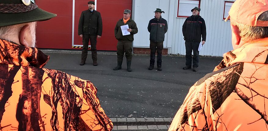 Als Eigentümer des Waldgebietes Hohes Holz vor den Toren von Oschersleben führt der Landkreis Börde auch Jagden durch. Bevor der erste Schuss fällt erfolgen die Jagdeinweisung und die  Sicherheits-belehrung. V.l.n.r. Landrat Martin Stichnoth, Gerald Hering, beim Landkreis Börde zuständig für den Kommunalwald, Thomas Roßbach, Leiter des Betreuungsforstamtes Flechtingen und Revierförster Jörg Strebe (Foto Uwe Baumgart).