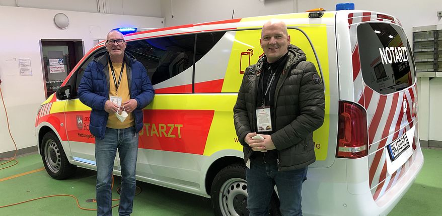 Die Entnahme der gesamten Ausrüstung erfolgt über die Heckklappe. Zur an Bord befindlichen Notfallausrüstung gehören unter anderem ein Notfallrucksack, ein EKG-Gerät, ein Defibrillator, eine Absaugpumpe, ein Knochenbohrer, eine mechanische Reanimationshilfe und ein Beatmungsgerät. Für eine verbesserte Wahrnehmung des Fahrzeuges im Einsatz wurden an der Außenhaut auffälligere Blaulichtbalken, eine LED-Front und Seitenblitzer angebracht. Zudem wurde durchgängig eine den aktuellen Sicherheitsstandards entsprechend Folierung verwendet.