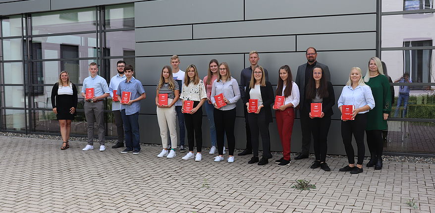 V. l. n r.: Ausbildungsleiterin Manuela Brasch, Leon Hempel / Kroppenstedt, Marcel Domenz / Gardelegen, Jacob Diebel / Hörsingen, Lilly Lilly / Pechau, Lukas Scharenberg / Flechtingen, Lucy Begenau / Rogätz, Lisa Eckelt / Oschersleben, Linda Peters / Klüden, Dustin Mai / Magdeburg, Marisa Mahler / Rogätz, Pia Habedank / Barleben, Landrat Martin Stichnoth, Manja Lübke / Haldensleben, Vanessa Hanke / Groß Santersleben, Personalamtsleiterin Julia Herzberg- Ebeling (Foto Uwe Baumgart)