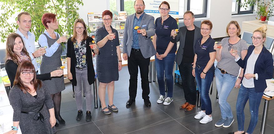 Es geht auch ohne Alkohol“, sagte Landrat Martin Stichnoth bei der Begrüßung. Als Arbeitgeber trägt er die Verantwortung für über 700 Beschäftigte in der Kernverwaltung. Indes nutzte Stichnoth die Gelegenheit, mit den Akteuren des Tages mit einem alkoholfreien Cocktail anzustoßen. Man konnte zwischen dem „Roten Seeräuber“ und „Kapitän Grünbär“ wählen. Zu den Zutaten gehören unter anderem Zitronen-, Apfel und Traubensaft oder Waldmeistersirup in der jeweiligen Mischung, jeweils kalt serviert.