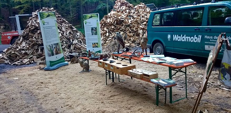 Auch das Waldmobil des Hauses des Waldes ist vor Ort. Ein Ausstellungswagen des Landesjagdverbandes und der Schutzgemeinschaft Deutscher Wald halten Informationsangebote vor. Foto Landkreis Börde