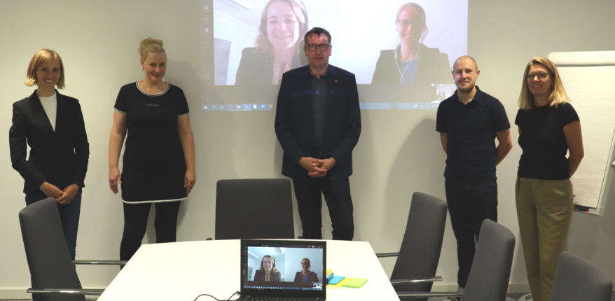 Bildunterschrift: Projektauftakt im Programm „Land.Zuhause.Zukunft“: v.l.n.r. Claudia Niemeyer (Ramboll), Sandra Simon (Leiterin Amt für Migration), Lisa Marie Veyhl (Robert Bosch Stiftung), Dirk Michelmann (Dezernent), Dr. Danielle Gluns (Universität Hildesheim), Christoph Heimel (Bildungskoordinator) und Angela Köllner (Ramboll) Bild: Landkreis Börde