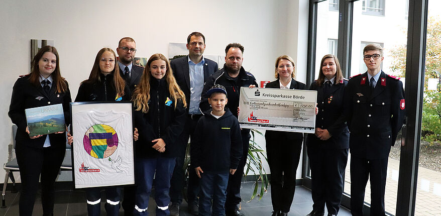 Spendenscheck übergeben: Kinder- und Jugendfeuerwehren wurden kreativ für Kinder in der Ukraine