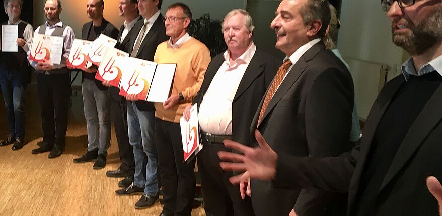 Die beiden Musikschulen des Landkreises Börde erhielten aus den Händen von Kulturstaatssekretär Gunnar Schellenberger (2. von rechts) die Urkunden für die "Staatliche Anerkennung". Auch Dr. Christian Reinecke, Geschäftsführer des Landesverbandes der Musikschulen Sachsen-Anhalt (vorne im Bild), gratulierte Armin Hartwig, Leiter der Musikschule Haldensleben/Wolmirstedt (3. von rechts), und Bernd Hohmann, Leiter der Musikschule „Kurt Masur“ Oschersleben (2. von links) / Foto Landkreis Börde.