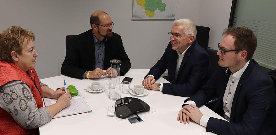 Im Gespräch. V. l. n. r.: Iris Herzig, Landrat Martin Stichnoth, Frank-Ulrich Wiener und David Kayser