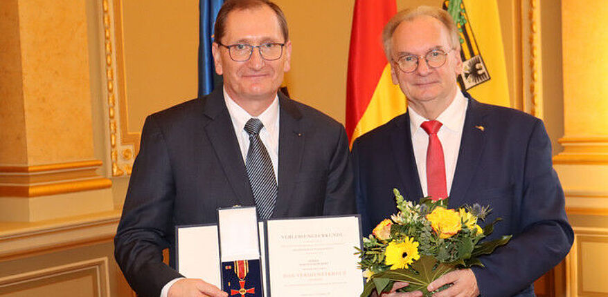 Ministerpräsident Dr. Reiner Haseloff hat am 07. Dezember 2023 in der Staatskanzlei in Magdeburg das Bundesverdienstkreuz an Torsten