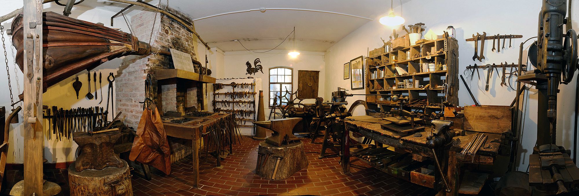 • Historische Werkstätten; Stellmacher, Schmied, Sattlerei