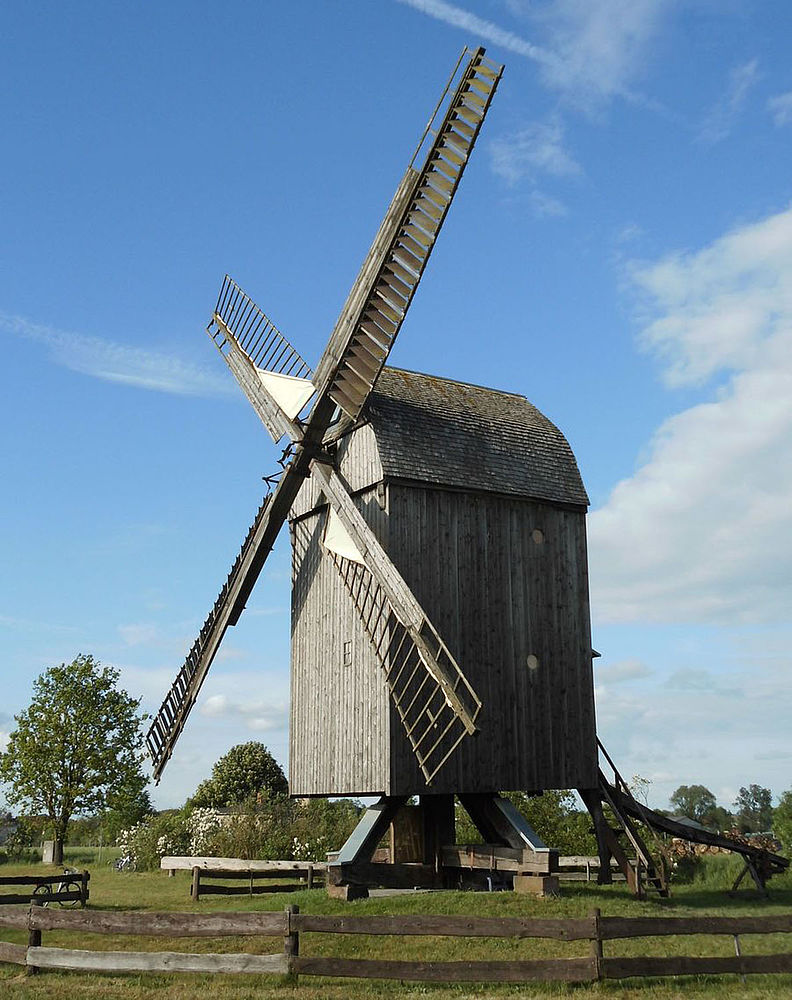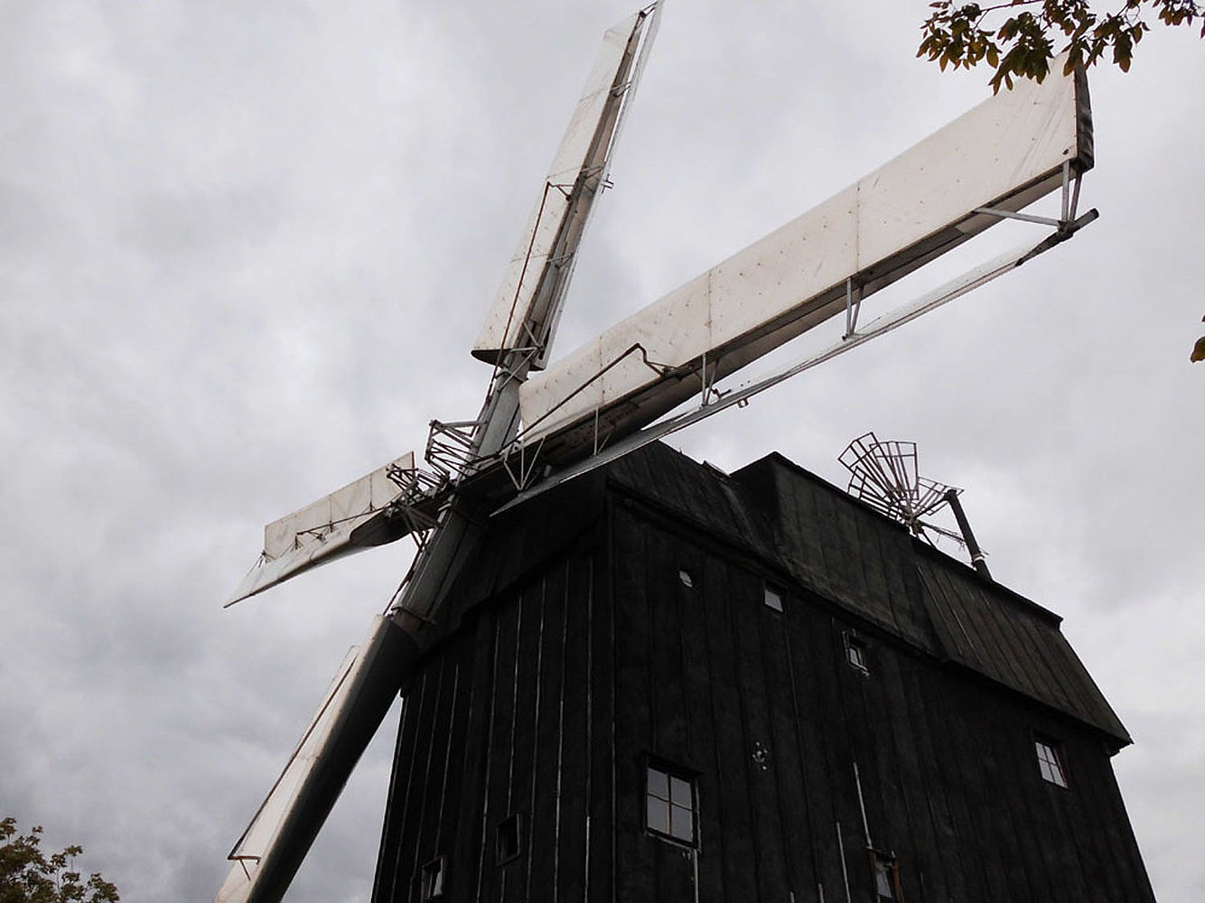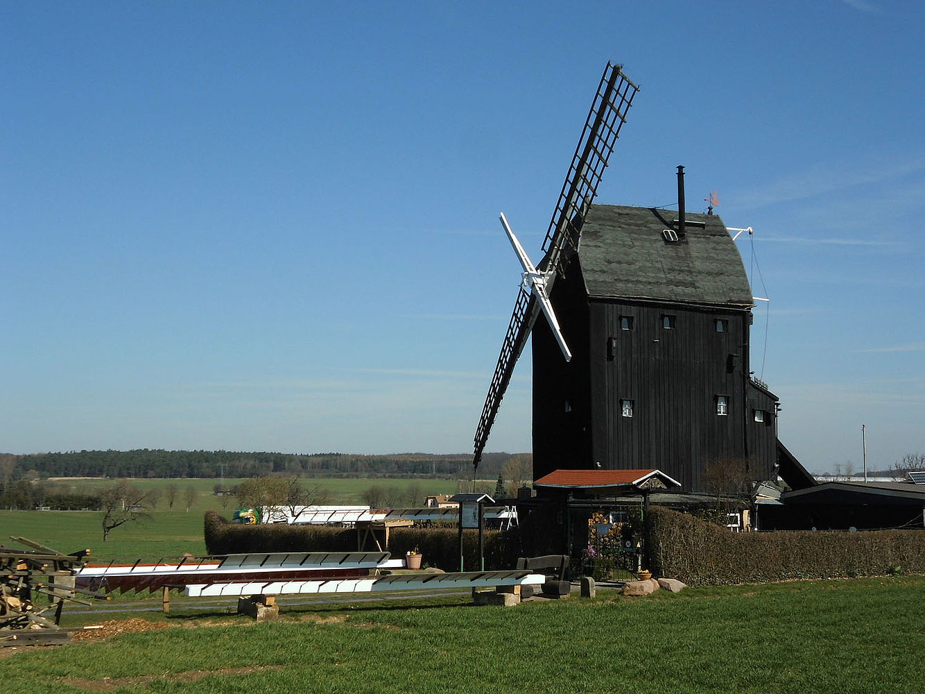 Bockwindmühle von 1861, am 30.05.1992 um 53 m in einem Stück umgesetzt. Die Mühle ist windgängig (zwei Jalousieflügel, zwei Flügel mit Besegelung), die mühlentechnische Einrichtung weitgehend erhalten: Mahlgang, Schrotgang, Sichtmaschine, alter Sechskantsichter, Aufzug, Feise. Neben der Mühle neu errichtetes Gehöft in Fachwerkbauweise: Backhaus mit altdeutschem Backofen, Scheune und Vereinsgebäude.