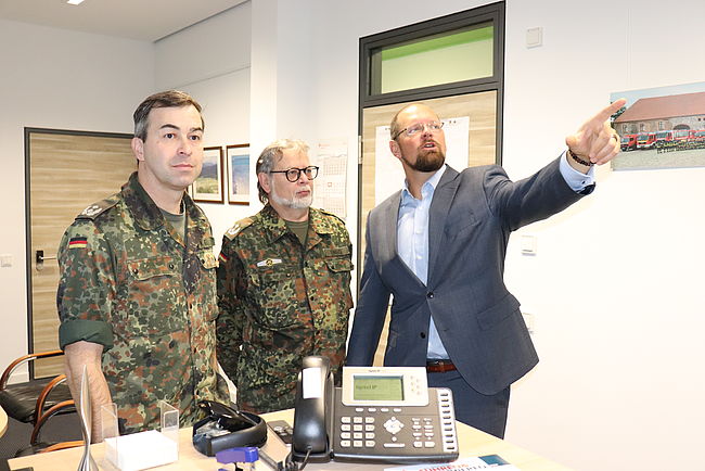 Traditionell zum Jahresende. Vertreter des Kreisverbindungskommandos Börde der Bundeswehr und Landrat Martin Stichnoth sprechen über Fragen der…