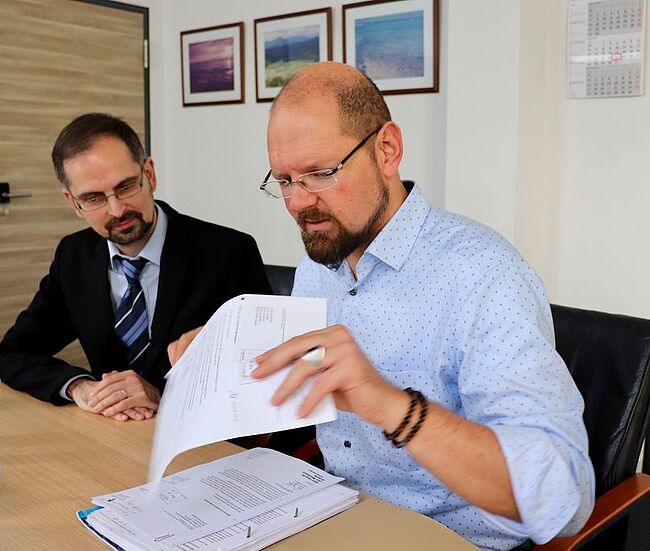 Landrat Martin Stichnoth lobt das bürgerschaftliche Engagement des Eigentümers Harald Binroth. Er steuert für das Projekt 60.000 Euro Eigenmittel bei.