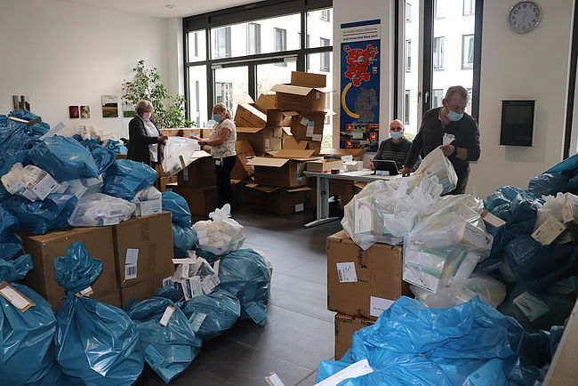 Am Verwaltungsstandort Bornsche Straße 2 in Haldensleben müssen 70.000 Corona-Schnelltests zur Verteilung an Schulen und Kindertagesstätten im…
