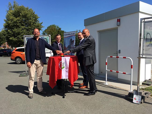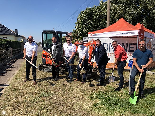 Durch die Glasfaser wechseln viele Haushalte auf die "Datenautobahn". Für diesen Bauabschnitt vollziehen Bürgermeister Benjamin Kanngießer und…